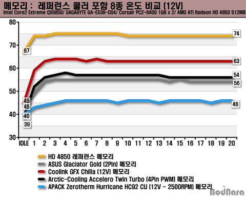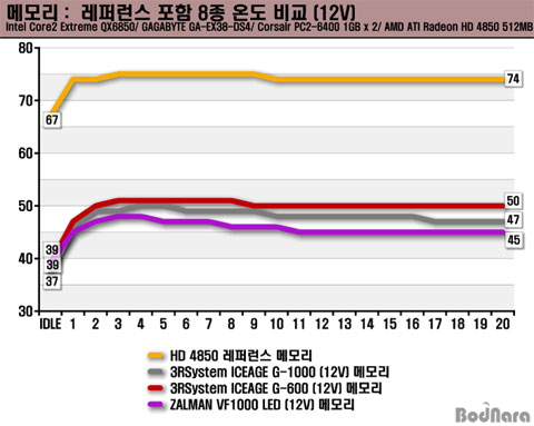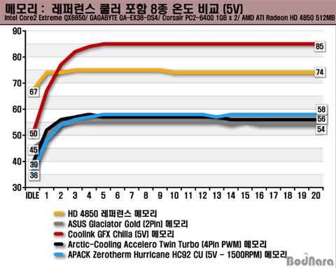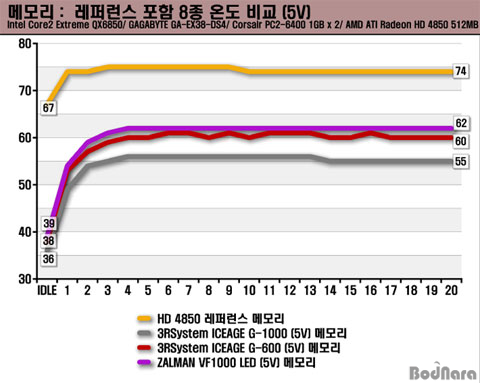 ¸Þ¸ð¸® ¹æ¿­ ºÎºÐÀ» »ìÆìº¸¸é HD 4850 ·¹ÆÛ·±½º´Â GPU¿Í Àü¿øºÎ, ¸Þ¸ð¸® ¸ðµÎ¸¦ Äð¸µÇÒ ¼ö ÀÖ°í ASUS ±Û¶ó½Ã¿¡ÀÌÅÍ °ñµåÀÇ °æ¿ì Ä𸵠ÆÒÀ¸·Î ÀÎÇÑ GPU ÁÖº¯ºÎ Ä𸵿¡ ÀÇÇØ Äð¸µÀÌ ÀÌ·ç¾îÁ® ¸Ö¸® ¶³¾îÁø Àü¿øºÎ¿Í ´Þ¸® Äð¸µÀÌ ¾î´À Á¤µµ ÀÌ·ç¾îÁö°Ô µÈ´Ù. ³ª¸ÓÁö ¾ÆÆ½Ä𸵠ƮÀ©Åͺ¸, Coolink GFX Chilla, ¿¡ÀÌÆÑ Á¦·Î½æ Ç㸮ÄÉÀÎ HC92 CU, 3RSystem ¾ÆÀ̽º¿¡ÀÌÁö G-1000/ G-600, À߸¸ VF1000 LED´Â ¸Þ¸ð¸®¸¦ À§ÇÑ ¹æ¿­ÆÇ 8°³¸¦ ¸ðµÎ Á¦°øÇϰí ÀÖ¾î Ä𸵠ÆÒÀÇ Ä𸵰ú ÇÔ²² ¸Þ¸ð¸® Äð¸µÀÇ È¿À²À» ³ô¿©ÁÙ ¼ö ÀÖ´Ù.