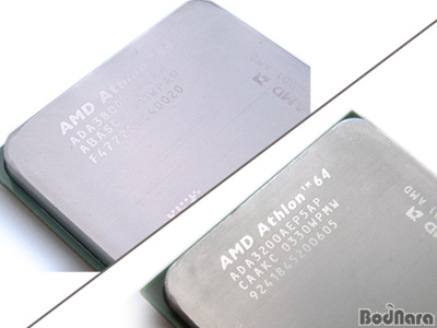 ¼ÒÄÏ 754ÀÇ Athlon64 3200+¿Í 939ÀÇ Athlon64 3800+¸¦ ºñ±³ÇÑ »çÁøÀε¥, Å©±â³ª µÎ²² µî.. ¹Ù´ÚÀÇ ÇÉ ¼ö¸¦ Á¦¿ÜÇϸé ÀüÇô Â÷À̰¡ ¾ø´Ù.