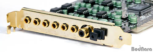 HDA Digital X-Mystique 7.1 Gold´Â À§ÀÇ »çÁø¿¡¼­ º¼¼ö ÀÖµíÀÌ ±âº»ÀûÀ¸·Î Ãâ·Â ÆÐ³ÎÂÊ¿¡ ¾Æ³¯·Î±× 7.1ä³Î Ãâ·Â°ú Line In ±×¸®°í Mic InÀÇ Áö¿øÀ» À§ÇØ ½ºÅ×·¹¿À Æ÷Æ® 6°³°¡ ÀåÂøµÇ¾î ÀÖÀ¸¸ç µðÁöÅÐ Ãâ·ÂÀ» Áö¿øÇϱâ À§ÇØ S/PDIF Coxial ¹× Optical Ãâ·Â Æ÷Æ®¸¦ Á¦°øÇϰí ÀÖ´Ù.