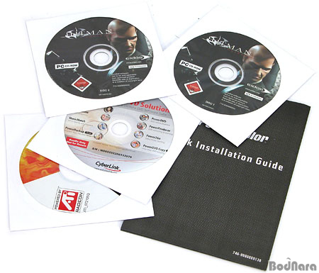 ³ª¸ÓÁö ³»¿ë¹°Àº Radeon X800 GT¸¦ »ç¿ëÇϱâ À§ÇÑ µå¶óÀ̹ö°¡ Æ÷ÇÔµÈ µå¶óÀ̹ö CD¿Í °£´ÜÇÑ ¼³Ä¡°¡ÀÌµå ±×¸®°í HITMAN 2¿Í CyberlinkÀÇ DVD ¼Ö·ç¼ÇÀ¸·Î ±¸¼ºµÈ PowerColor PowerPackÀÌ Æ÷ÇԵǾî ÀÖ´Ù.