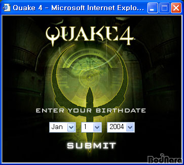 ȨÆäÀÌÁö ¾ÊÀ¸·Î µé¾î°¡±â À§Çؼ­´Â ¹æ¹®ÀÚÀÇ »ý³â¿ùÀÏÀÇ Ã¼Å©ÇÏ°Ô µÈ´Ù. Quake4 °ÔÀÓ ÀÚü°¡ ¹Ì¼º³âÀÚ °ü¶÷ºÒ°¡(?)¶ó°í Ç¥ÇöÇØ¾ßÇÒ ÇϵåÄÚ¾î °ÔÀÓ À帣À̹ǷΠ¹æ¹®ÀÚ°¡ ¼ºÀÎÀÓÀ» ÀÔÁõÇØ¾ß ÇÑ´Ù. ´Ü¼øÈ÷ »ý³â¿ùÀϸ¸ ÀÔ·ÂÇϰí À̸¦ È®ÀÎÇÏ´Â ¹æ¹ýÀ̱⠶§¹®¿¡ °¡Â¥·Î ³¯Â¥¸¦ ÀÔ·ÂÇØµµ µé¾î°¥ ¼ö´Â ÀÖ´Ù. Á¢¼ÓÀÚ ÀÚ½ÅÀÇ Ã¥ÀÓÀ̶ó´Â ¶æÀϱî?