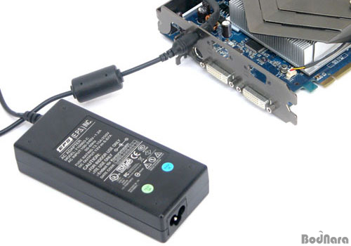 Àü¿ø ¾î´ðÅÍ´Â 12V¿¡ 6.67AÀÇ ¿ë·®À» °¡Á® ÃÖ´ë 80WÀÇ Àü¿øÀ» ±×·¡ÇÈ Ä«µå º¸Á¶Àü¿ø ´ÜÀÚ¿¡ °ø±ÞÇØÁÙ ¼ö ÀÖ´Ù. 80W Á¤µµ´Â PC ³»ºÎÀÇ ÆÄ¿ö ¼­ÇöóÀ̷εµ °ø±Þ °¡´ÉÇϱ⠶§¹®¿¡ ÆÄ¿ö¿ë 12V ÄÉÀÌºí¿¡¼­ 6ÇÉ º¸Á¶Àü¿øÀ¸·Î ¹Ù²Ù´Â Àü¿ø ÄÉÀÌºíµµ ÆÐŰÁö¿¡ Á¦°øÇϰí ÀÖÁö¸¸, ³»ºÎ ÆÄ¿ö ¼­ÇöóÀ̸¦ »ç¿ëÇÏ°Ô µÇ¸é CPU³ª ´Ù¸¥ PC ºÎǰµé¿¡ °ø±ÞµÇ´Â Àü·ÂÀÌ ºÎÁ·ÇØÁú ¼öµµ ÀÖ´Ù.