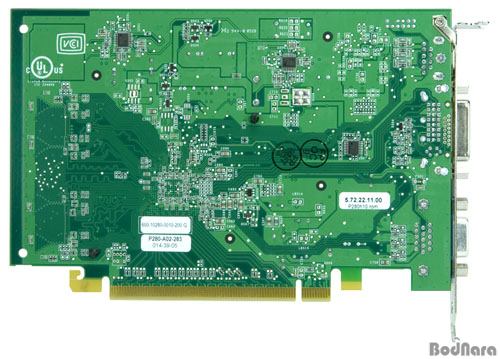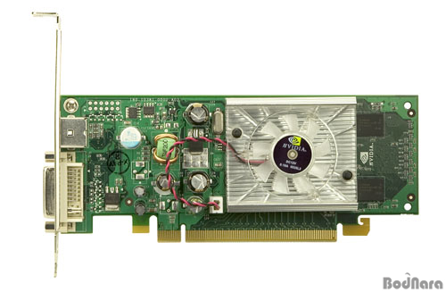 LP ŸÀÔÀ¸·Î ¸¸µé¾îÁø ¶Ç ´Ù¸¥ GeForce 7300 GS ·¹ÆÛ·±½º µðÀÚÀÎÀº ±âº»ÀûÀ¸·Î DVI¿Í TV-Out Ãâ·Â ´ÜÀÚ¸¸À» °¡Áö°í ÀÖ´Ù. ÀϹÝÇü Á¦Ç°°ú ¸¶Âù°¡Áö·Î Ä𸵠ÆÒÀÌ µé¾î°£ Ä𷯸¦ »ç¿ëÇϰí ÀÖÀ¸¸ç, ¿ÜºÎ º¸Á¶Àü¿ø ÀÔ·Â ´ÜÀÚ´Â ¿ª½Ã ¾ø´Ù.
