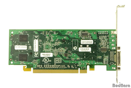ÀϹÝÇü Á¦Ç°°ú °°Àº 16bit ¸Þ¸ð¸® ĨÀ» ¾Õ/µÚ·Î ´Þ¾Æ 64bit ¸Þ¸ð¸® ÀÎÅÍÆäÀ̽º¸¦ ±¸¼ºÇϰí ÀÖ´Ù. D-SUB Ãâ·Â ´ÜÀÚ´Â »ý·«µÇ¾î ÀÖÁö¸¸, ±×·¡ÇÈ Ä«µå Á¦Á¶»ç¿¡¼ ÇÊ¿äÇÏ´Ù¸é PCBÀÇ »ó´Ü ¿ÞÂÊ¿¡ ÀÖ´Â D-SUB Ãâ·ÂºÎ¸¦ ¿¬°áÇØ Á¦°øÇÒ ¼ö ÀÖ´Ù.