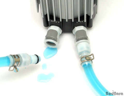 Äü Ä¿Çøµ(Quick Coupling) ¹Ùµð¿¡ ¿¬°áÇÏ´Â Äü Ä¿Çøµ Àμ­Æ®´Â 2°³¸¦ Á¦°øÇÏ¿© Àξƿô¿¡ °¢°¢ »ç¿ëÇÏ°í ´©¼ö ¹æÁö¸¦ À§ÇÑ °í¹« ÆÐÅ·ÀÌ Äü Ä¿Çøµ ³»ºÎ¿¡ ÀåÂøµÇ¾î »ç¿ëµÈ´Ù. µ¿ÀÛÁß¿¡ ºÐ¸®¸¦ ÇØµµ º§ºê ±¸Á¶·Î µÇ¾îÀÖ¾î ³Ã°¢¼ö°¡ »õ¾î ³ª¿ÀÁö ¾Ê´Â´Ù. (»çÁø¿¡¼­ Èê·¯³ª¿Â ³Ã°¢¼ö´Â Ä¿Çøµ ºÎºÐ¿¡ ³²¾ÆÀÖ´ø ¼Ò·®ÀÇ ³Ã°¢¼ö´Ù.)