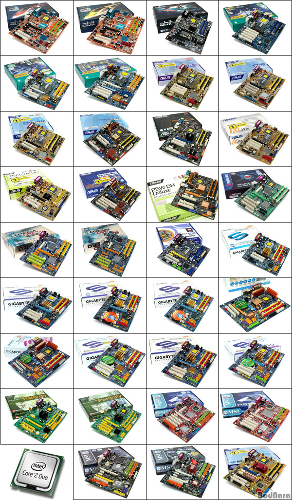 À̹ø Core 2 Duo ¸ÞÀκ¸µå º¥Ä¡¸¶Å© 2ºÎ¿¡ »ç¿ëµÈ »ùÇà Á¦Ç°ÀÇ ¼ö·®Àº ÃÑ 35Á¾À¸·Î P965 ¸ÞÀκ¸µå°¡ 13Á¾, G965 ¸ÞÀκ¸µå 2Á¾, i975X ¸ÞÀκ¸µå 4Á¾, i945P ¸ÞÀκ¸µå 7Á¾, i945G ¸ÞÀκ¸µå 3Á¾ µîÀ̸ç, i945PL, i865PE, P4M890 ¸ÞÀκ¸µå´Â °¢°¢ 1Á¾¾¿ÀÌ µé¾î°¬´Ù. (nForce 570 SLI´Â À̹ø º¥Ä¡¸¶Å©¿¡¼­ Ãß°¡·Î 1Á¾ÀÌ ´õ µé¾î°¡ ÃÑ 2Á¾ÀÌ µÈ´Ù)