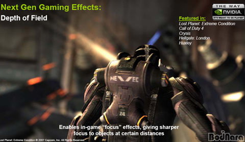 ¶ÇÇÑ ÇÇ»çü°¡ ¼±¸íÇÏ°Ô º¸ÀÌ´Â ¹üÀ§¸¦ ÀǹÌÇÏ´Â Depth of Field(ÃÊÁ¡½Éµµ, ȤÀº ÇÇ»ç°è ½Éµµ)´Â ¿ø±Ù°¨À» Ç¥ÇöÇØÁÖ´Â ±â¼ú·Î½á »çÁøÀ̳ª ¿µÈ­¿¡¼­ ÁÖ·Î º¼ ¼ö ÀÖ´Â ¾Æ¿ô Æ÷Ä¿½ÌÀ» ¿¬»óÇϸé ÀÌÇØ°¡ ºü¸¦ °ÍÀÌ´Ù. ¹°·Ð Áö±Ý±îÁö °ÔÀÓ ¿£ÁøµéÀÇ °æ¿ì ¾î´ÀÁ¤µµÀÇ ¿ø±Ù°¨ Ç¥ÇöÀÌ ÀÌ·ïÁ³Áö¸¸ CryEngine2´Â Á¤È®ÇÑ Æ÷Ä¿½º °³³äÀ» µµÀÔÇÔÀ¸·Î½á ´Ü¼øÇÏ°Ô °¡±îÀÌ ÀÖ´Â °ÍÀº ¶Ñ·ÇÇϰÔ, ¸Ö¸® ÀÖ´Â °ÍÀº »Ñ¿¸°Ô ó¸®ÇÏ´Â ¹æ½ÄÀÌ ¾Æ´Ï¶ó Æ÷Ä¿½º¿¡ µû¶ó ¿ø°Å¸®¿Í ±Ù°Å¸®¸¦ È®½ÇÇÏ°Ô Ç¥ÇöÀ» ÇØÁÖ°Ô µÈ´Ù.