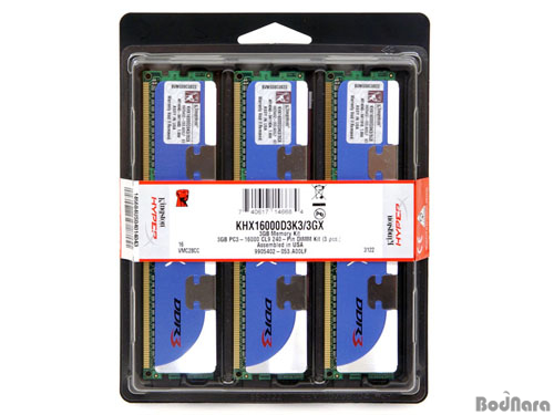 KHX16000D3K3/3GX´Â DDR3 1GB ¸Þ¸ð¸® 3°³¸¦ Çϳª·Î ¸¸µç Æ®¸®Çà ä³Î ¸Þ¸ð¸® ŶÀ¸·Î ±¸¼ºµÇ¾ú´Ù. ¿À¹öŬ·°¿¡ Æ¯ÈµÈ HyperX ½Ã¸®Áî °¡¿îµ¥¼ °¡Àå ³ôÀº µ¿ÀÛ Å¬·°ÀÎ PC3-16000(DDR3-2000MHz)ÀÇ ½ºÆåÀ» °¡Áö°í ÀÖÀ¸¸ç, ¸Þ¸ð¸® ·¹ÀÌÅϽõµ CL9À¸·Î DDR3-1333°ú ºñ±³ÇØ ·¹ÀÌÅϽô À¯ÁöÇÏ¸é¼ µ¿ÀÛ Å¬·°À» ³ô¿´´Ù.