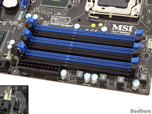 X58Ĩ¼ÂÀ» »ç¿ëÇÑ º¸µå¿¡´Â DDR3 ¸Þ¸ð¸® ½½·Ô¸¸ÀÌ ¹èÄ¡µÇ°Ô µÇ´Âµ¥, ÀÌ´Â ÄÚ¾î i7 ÇÁ·Î¼¼¼­¿¡ DDR3 ¸Þ¸ð¸® ÄÁÆ®·Ñ·¯°¡ ³»ÀåµÇ¾î Àֱ⠶§¹®À¸·Î, Eclipse Plus¿¡´Â °¢ ½½·Ô´ç ÃÖ´ë 4GB ¿ë·®ÀÇ DDR3 ¸Þ¸ð¸®¸¦ ÀåÂøÇÒ ¼ö ÀÖ´Â ¸Þ¸ð¸® ½½·Ô 6°³°¡ ¸¶·ÃµÇ¾î ÀÖ´Ù.
