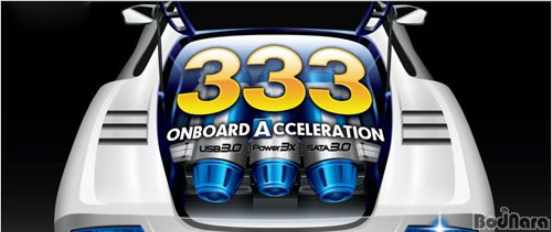 ±â°¡¹ÙÀÌÆ®¿¡¼´Â SATA 3¼¼´ë¿Í USB 3.0À¸·Î ±âÁ¸ SATA 2¼¼´ë¿Í USB 2.0º¸´Ù µ¥ÀÌÅÍ Àü¼ÛÀ», ·¹ÆÛ·±½º µðÀÚÀÎ USB Æ÷Æ®º¸´Ù USB Æ÷Æ®ÀÇ Àü·Â °ø±Þ·®À» 3¹è ³ô¿© ¸ð¹ÙÀÏ ±â±âÀÇ ÃæÀüÀ» ºü¸£°Ô ÇÏ´Â 333 Onboard Acceleration ±â¼úÀ» ¼±º¸¿´´Âµ¥, 990FXA-UD7¿¡µµ ÇØ´ç ±â¼úÀÌ Àû¿ëµÇ¾ú´Ù.