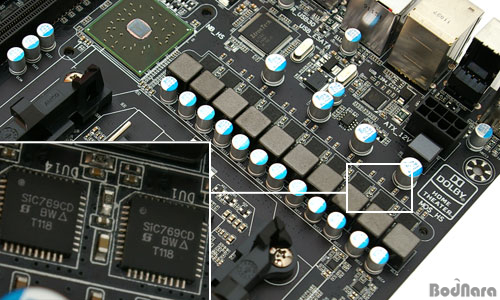¶ÇÇÑ,¿À¹öŬ·¯Ä¿µéÀ» À§ÇØ º°µµÀÇ ¸ð½ºÆê°ú ¸ð½ºÆê µå¶óÀ̹ö°¡ »ç¿ëµÈ ±âÁ¸ Àü¿øºÎº¸´Ù Ư¼ºÀÌ ¿ì¼öÇÑ DrMOS Àü¿øºÎ¿¡´Â ´ëÇü È÷Æ®½ÌÅ©¿Í È÷Æ®ÆÄÀÌÇÁ·Î Àü¿øºÎ¿Í Ĩ¼ÂÀÇ ¹ß¿À» ÇØ°áÇϸç, ÃÖ´ë 10°³ÀÇ SATA Æ÷Æ®·Î ½ºÆ®·ÎÁö È®À强À» ³ôÀ̰í, ¿Âº¸µå ½ºÀ§Ä¡¿Í µð¹ö±×LED·Î »ç¿ë ÆíÀǼºÀ» ³ô¿´´Ù.