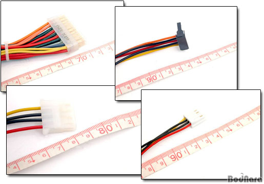 ATX Àü¿ø ÄÉÀ̺íÀÇ °æ¿ì 24ÇÉ -> 20ÇÉ º¯È¯ Ä¿³ØÅͰ¡ µ¡ºÙ¿©Áø °ü°è·Î ±æÀ̰¡ ´Ã¾î³µÀ¸¸ç S-ATA Àü¿ø ÄÉÀÌºíµµ 4°³°¡ µé¾î°¡¸é¼­ ±æÀ̰¡ »ó´çÈ÷ ±æ¾îÁ³´Ù. ±× ¿ÜÀÇ Àü¿ø ÄÉÀÌºíµµ ±æÀ̰¡ ´Ã¾î³ª ÀÖ´Ù.