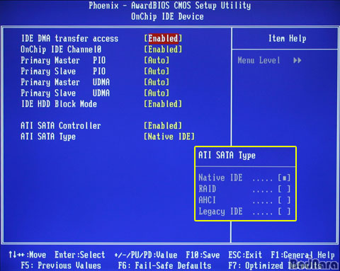 IDE ÀåÄ¡µé°ú S-ATA ÀåÄ¡µéÀÇ ¼³Á¤Àº OnChip IDE Device¿¡¼­ ¼³Á¤ÀÌ °¡´ÉÇѵ¥ ÀÌ °÷¿¡¼­´Â IDE ¼³Á¤ ¿Ü¿¡ »ç¿ì½ººê¸´ÁöÀÎ SB600ÀÌ Á¦°øÇϰí ÀÖ´Â SATA °ü·Ã RAID ±¸¼ºÀ̳ª AHCI¸¦ ¼³Á¤ÇÒ ¼ö ÀÖ´Ù.