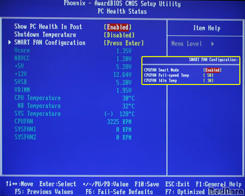 PC Health Status¿¡´Â Æ÷½ºÆÃ Áß¿¡ º¼ ¼ö ÀÖ´Â °¢Á¾ Àü¾ÐÀ̳ª CPUÀÇ ¿Âµµ, RPMÀ» Ç¥½ÃÇÒÁö¸¦ ¼±ÅÃÇÒ ¼ö ÀÖ´Â Show PC Health In Post Ç׸ñ°ú ¿Âµµ¿¡ µû¶ó Ä𸵠ÆÒÀÇ ¼Óµµ¸¦ Á¶ÀýÇÒ ¼ö ÀÖ´Â SMART FAN ±â´ÉÀ» Á¦°øÇÑ´Ù.