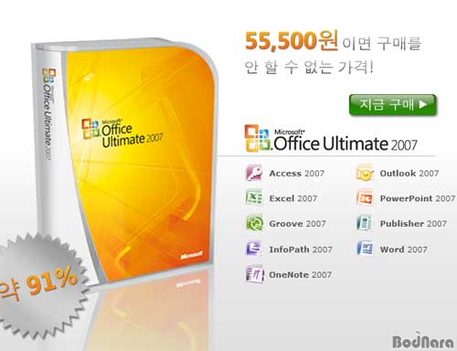 ÇÁ·Î¸ð¼Ç ´ë»óÁ¦Ç°Àº ¿ÀÇǽº Ultimate 2007·Î, Word, Excel, Powerpoint°°Àº ´ëÇ¥ÀûÀÎ ÇÁ·Î±×·¥°ú ÇÔ²², Outlook, Publisher, Groove, Access, OneNote, Infopath·Î ±¸¼ºµÇ¾î ÀÖ´Ù.