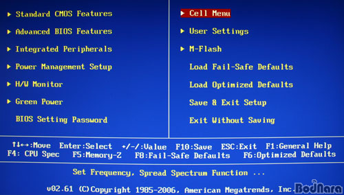 ±âº»ÀûÀÎ ¹ÙÀÌ¿À½º È­¸éÀº ¿©Å¸ ¸ÞÀÎ º¸µå¿Í ´Ù¸£Áö ¾ÊÀºµ¥, ¸ÞÀκ¸µåÀÇ Àü·Â°ü¸®¿¡ °ü°èµÈ Green Power¸Þ´º¿Í ¿À¹öŬ·¯Å· ¼³Á¤À» ¸ð¾Æ ³õÀº Cell Menu, USB µå¶óÀ̺긦 ÀÌ¿ëÇÏ¿© ¹ÙÀÌ¿À½ºÀÇ ¹é¾÷°ú ¾÷µ¥ÀÌÆ®, ºÎÆÃÀÌ °¡´ÉÇÑ M-Flash ¸Þ´º°¡ ´«¿©°Ü º¼ ¸¸ÇÏ´Ù.