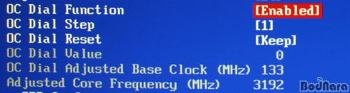 OC Dial ¸Þ´º´Â ¸ÞÀκ¸µå¿¡ ÀåÂøµÈ OC Dial ¹öư°ú ³ëºê¸¦ ÀÌ¿ëÇÑ ¿À¹öŬ·¯Å·À» ¼³Á¤ÇÏ´Â ¸Þ´ºÀÌ´Ù. OC Dial StepÀÇ °ªÀ» 1¿¡¼­ 10±îÁö º¯°æÇÒ ¼ö ÀÖÀ¸¸ç, ÀÌ¿¡ µû¶ó OC Dial ³ëºê¸¦ ÇÑ ´Ü°è µ¹¸± ¶§¸¶´Ù CPUÀÇ Base ClockÀÌ º¯ÇÏ°Ô µÇ°í, ÀÌ¿¡ µû¶ó CPU Ŭ·°ÀÌ Á¶ÀýµÇ´Â °ÍÀÌ´Ù.