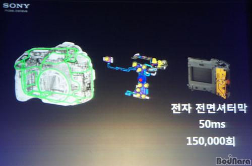 2,430¸¸ È¼Ò ¼¾¼¿Í ÃÊ´ç 10¿¬»ç ¼Óµµ, Ç®HD 60/24fps µ¿¿µ»ó, ¼ÅÅÍ ¼Óµµ 1/8000ÃÊ, ISO 100-16000, XGA OLED ºäÆÄÀδõ µîÀÌ A65¸¦ ´Ù¸¥ °æÀï»ç º¸±ÞÇü DSLR°ú °°Àº ¼öÁØÀ¸·Î ³õ±â¿¡´Â ¹«¸®°¡ ÀÖ¾ú°í, ¼Ò´Ï°¡ A55ÀÇ »óÀ§ ¸ðµ¨ÀÎ ¸ÞÀνºÆ®¸²À¸·Î ¶óÀξ÷À» ±¸ºÐÇÏ°Ô µÈ °ÍÀÌ´Ù.