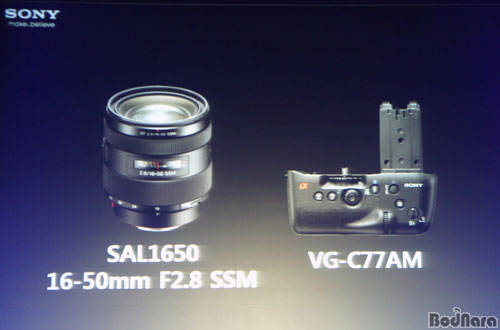 A77 »Ó¸¸ ¾Æ´Ï¶ó ÇÔ²² Ãâ½ÃµÇ´Â 16-50mm F2.8 SSM ·»Áî¿Í VG-C77AM ¼¼·Î±×¸³µµ ¹æÁø¹æÀûÀ» Áö¿øÇÑ´Ù. SAL1650 ·»Áî´Â ÃÊÀ½ÆÄ ¸ðÅÍ(SSM)ÀÌ µé¾î°¡ µ¿¿µ»ó ÃÔ¿µ½Ã ·»Áî ±¸µ¿ ¼ÒÀ½À» ÃÖ¼ÒÈ ÇÒ ¼ö ÀÖ°í, VG-C77AMÀº ¼¼·Î·Î ÃÔ¿µÇÒ ¶§µµ µ¿ÀÏÇÑ Á¶ÀÛ ±â´ÉÀ» Á¦°øÇÑ´Ù.