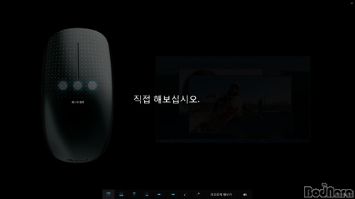 MS ÅÍÄ¡ ¸¶¿ì½º´Â Ãø¸é¿¡ Á¦°øµÇ´Â ¹öưºÎÀÇ ¿ªÇÒµµ ÅÍÄ¡¸¦ ÅëÇÑ Á¦½ºÃ³·Î Áö¿øÀ» ÇØÁÖ°í ÀÖ´Ù. Áï, ¾öÁö¼Õ°¡¶ôÀ» ¿ÞÂÊ¿¡¼ ¿À¸¥ÂÊ (¾Æ·¡¿¡¼ À§ÂÊ)À¸·Î ¿òÁ÷ÀÌ¸é ¾ÕÀ¸·Î À̵¿, ¹Ý´ë·Î ¿ÞÂÊ¿¡¼ ¿À¸¥ÂÊ (À§¿¡¼ ¾Æ·¡ÂÊ)À¸·Î ¿òÁ÷ÀÌ¸é µÚ·Î À̵¿ÀÇ ¿ªÇÒÀ» °¢°¢ ¼öÇàÇÏ°Ô µÈ´Ù.