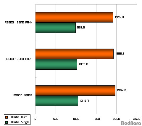 ³ªÁß¿¡¼­¾ß ÀÔ¼öµÈ 128MB ¹öÁ¯ÀÇ Radeon 9600XTÀÇ ÇÊ·¹ÀÌÆ® Å×½ºÆ® °á°ú¸¦ º¸ÀÚ. GF FX5700U¿Í µ¿µîÇÑ 128MBÀÇ ÇÁ·¹ÀÓ ¹öÆÛ¸¦ °®°í ÀÖÁö¸¸, GF FX5700U ó·³ FillRateÀÇ ³«ÆøÀÌ Å©Áö ¾Ê´Ù. µÚ¿¡¼­ ¾ð±ÞÇϰÚÁö¸¸ AA´Â nVIDIAÀÇ ¾Ë°í¸®Áò°ú ATIÀÇ ¾Ë°í¸®ÁòÀÌ ´Ù¸£¸ç, AA Àû¿ë ÈÄÀÇ Ç°Áúµµ Â÷À̰¡ Å«µ¥, nVIDIAÀÇ »ùÇøµ ¾Ë°í¸®ÁòÀÌ Á» ´õ º¹ÀâÇÏ´Ù´Â °ÍÀÌ ÀÌ·¯ÇÑ FillRateÀÇ Æ¯¼ºÀ» ¼³¸íÇÒ ¼ö ÀÖ´Â ±Ù°Å Áß Çϳª°¡ µÉ °ÍÀÌ´Ù.
