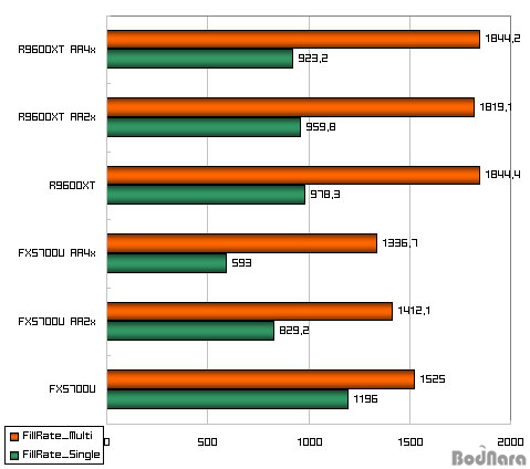 ƯÈ÷ FillRateÀÇ °æ¿ì¿¡´Â ´ÜÀÏ ÅØ½ºÃĸ¦ µå·ÎÀ× ÇÒ¶§´Â FX5700U°¡ ¾Õ¼­Áö¸¸, ¿©·¯ °³ÀÇ ÅØ½ºÃĸ¦ µå·ÎÀ×ÇÒ¶§´Â Radeon 9600 XT°¡ ¾Õ¼­¼­ ·»´õ¸µ ´ë»óÀÇ ÃâÇö ½ºÅ¸ÀÏ¿¡ µû¶ó Radeon 9600 XT°¡ Å« Â÷ÀÌ·Î ¾Õ¼³ ¼ö ÀÖ´Â °¡´É¼ºÀ» º¸¿©ÁØ´Ù. ƯÈ÷ Shader ¼º´ÉÀº Vertex, Pixel, Advanced Pixel Shader¿¡¼­ ¸ðµÎ Radeon 9600XT°¡ ¾ÕÁö¸£°í ÀÖ´Ù.