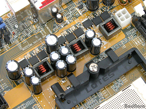Àü¿øºÎ ±¸¼ºÀº 3PhaseÀ̸ç, ÃÝÅ© ÄÚÀÏÀ» »ç¿ëÇÏÁö ¾Ê°í ³ëÀÌÁî ¹ß»ý¿¡¼­ À¯¸®ÇÑ ¹Ú½ºÇüÀÇ ÄÚÀÏÀ» Àû¿ëÇÏ¿© ¾ÈÁ¤ÀûÀÎ Àü¿ø °ø±ÞÀÌ °¡´ÉÇÏ°Ô ±¸¼ºµÇ¾î ÀÖ´Ù. Athlon64CPU°¡ ¸Þ¸ð¸® ÄÁÆ®·Ñ·¯¸¦ ³»ÀåÇϰí ÀÖÁö¸¸, ¸Þ¸ð¸® ½½·ÔÀÌ ¹Ù·Î »ó´Ü¿¡ À§Ä¡ÇÏ¿© CPU¿ÍÀÇ µ¥ÀÌÅÍ À̵¿¿¡¼­ À¯¸®ÇÑ ±¸Á¶ÀÌ´Ù. È®Àå ½½·ÔÀº PCI-Express x1 ½½·Ô 2°³, PCI-Express x16 ½½·Ô 1°³, PCI ½½·Ô 3°³¸¦ Á¦°øÇÑ´Ù. LanParty ½Ã¸®Áî¿Í ºñ±³ÇÏ¿© È­·ÁÇÏÁö´Â ¾ÊÁö¸¸, ²À ÇÊ¿ä·Î ÇÏ´Â ±â´ÉµéÀ» ¸ðµÎ Æ÷ÇÔÇÏ°í º¸´Ù Çö½ÇÀûÀÎ °¡°ÝÀ» °¡Áø Á¦Ç°ÀÌ´Ù.