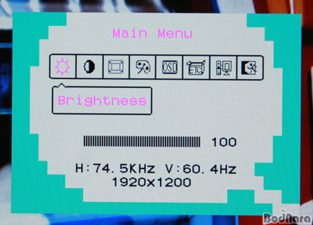 ¸ðµç OSD ¸Þ´º ÇÏ´Ü¿¡´Â ¼öÆò/¼öÁ÷ Á֯ļöÀÇ Hz¿Í ÇöÀç ¼³Á¤µÈ ÇØ»óµµ¿¡ ´ëÇÑ Á¤º¸°¡ OSD ÇÏ´Ü¿¡ ÀÚ¸®Àâ°í ÀÖÀ¸¸ç, ÇØ»óµµ Á¤º¸´Â 720p, 1080p, 1920x1200 ¼¼ °¡Áö·Î¸¸ Ãâ·ÂµÇ¾î ±ÇÀåÇØ»óµµ¸¦ »ç¿ëÇÒ °ÍÀ» OSD ÀÚü°¡ ±ÇÀ¯(?)ÇÑ´Ù.