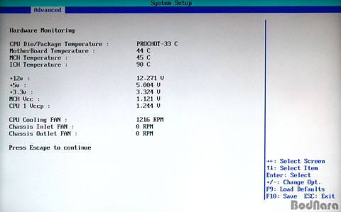 Hardware Monitoring ºÎºÐ¿¡¼­´Â ÇöÀç »ç¿ëµÇ´Â ½Ã½ºÅÛÀÇ Àü¾Ð, CPU Ä𸵠ÆÒ µ¿ÀÛ ¼Óµµ, ¸ÞÀκ¸µå¿Í MCH, ICHÀÇ ¿Âµµ µîÀ» ¸ð´ÏÅ͸µ ÇÒ ¼ö ÀÖ´Ù.