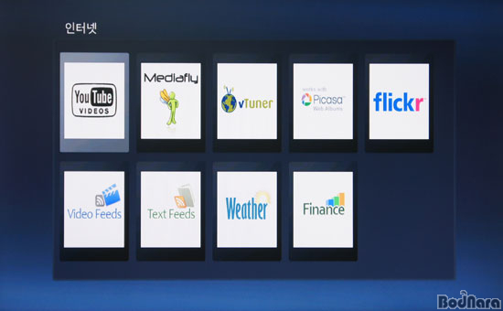 °íÇ÷º½º TVÀÇ ÀÎÅÍ³Ý ¿¬°á ±â´ÉÀº ¼¼°è ÃÖ´ë µ¿¿µ»ó °øÀ¯ »çÀÌÆ®ÀÎ À¯Æ©ºê¸¦ ºñ·ÔÇØ Mediafly, vTuner, Picasa, flicker µîÀÇ µ¿¿µ»ó »çÁø ½ºÆ®¸®¹Ö ¼ºñ½º, RSS ±â¹ÝÀÇ ºñµð¿À Çǵå¿Í ÅØ½ºÆ® Çǵå, ±×¸®°í ³¯¾¾¿Í ±ÝÀ¶ À§Á¬ÀÌ µé¾î°¬´Ù. ¹Ì±¹ Áö¿ª¿¡¼´Â ÁÖ¹®Çü ºñµð¿ÀÀÎ ³ÝÇø¯½º(Netflix)µµ Æ÷ÇÔµÇÁö¸¸ ±¹³» Ãâ½Ã Á¦Ç°¿¡´Â ´ç¿¬È÷ ºüÁ®ÀÖ´Ù.