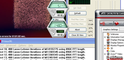 ¼º´ÉÅ×½ºÆ®´Â CPU¿Í VGA¸¦ ±âÁØÀ¸·Î Ç߱⠶§¹®¿¡ Intel ÆæÆ¼¾ö4-630 ÇÁ·¹½ºÄ±À» »ç¿ëÇßÀ¸¸ç, ±×·¡ÇÈ Ä«µå´Â ATi X1900 XTX¸¦ »ç¿ëÇß´Ù. ATiTool 0.25 Beta14¸¦ ÀÌ¿ëÇÑ Scan for Artfacts¸¦ ÀÌ¿ëÇØ GPU¸¦ Ç®·Îµå »óÅ·Π¸¸µé¾úÀ¸¸ç, Prime95¸¦ ÀÌ¿ëÇØ CPU¿ª½Ã 100% Á¡À¯À²·Î ¸¸µé¾ú´Ù. Reserator º»Ã¼ÀÇ ¹ß¿­Àº µðÁöÅÐ ¿Âµµ°è¸¦ ÅëÇØ üũÇß´Ù. 10ºÐÀÇ IDLE ½Ã°£ÈÄÀÇ ¿Âµµ¸¦ üũÇÑ ÈÄ 1ºÐ¿¡¼­ 10ºÐ±îÁö 1ºÐ °£°ÝÀÇ ¿Âµµ üũ¿Í ÇÑ ½Ã°£ÀÌ Áö³­ ÈÄ¿¡ ¾ÈÁ¤µÈ ÃÖÁ¾¿Âµµ¸¦ üũÇÏ´Â °ÍÀ¸·Î Å×½ºÆ® Çß´Ù.