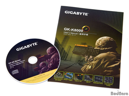 °ÔÀÌ¹Ö Å°º¸µåÀÇ ÇʼöÁ¶°ÇÀº Çϵå¿þ¾î »Ó¸¸ ¾Æ´Ï¶ó ¼ÒÇÁÆ®¿þ¾îÀûÀ¸·Îµµ °ÔÀÓ¿¡ µµ¿òÀÌ µÉ ¸¸ÇÑ ±â´ÉÀ» Áö¿øÇØ¾ß ÇÑ´Ù´Â Á¡ÀÌ´Ù. ±â°¡¹ÙÀÌÆ® GK-K8000Àº Űº¸µå¿¡¼­ Á¦°øÇÏ´Â ±â´ÉµéÀ» Àß »ç¿ëÇϱâ À§ÇÑ °í½ºÆ® ¿£Áø ¼ÒÇÁÆ®¿þ¾î¿Í Æß¿þ¾î ¾÷±×·¹À̵å ÅøÀÌ µé¾î°£ CD¸¦ Á¦°øÇϰí ÀÖ´Ù.
