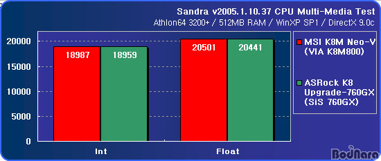 Sandra 2005 CPU Multi-Media Å×½ºÆ® °á°ú´Â ù¹øÂ°¿Í ´Þ¸® MSI K8M Neo-VÀÇ ¼º´ÉÀÌ ¾à°£ ³ô°Ô ³ªÅ¸³ªÁö¸¸, ù¹øÂ° Å×½ºÆ® °á°ú¿Í ¸¶Âù°¡Áö·Î °ÅÀÇ ¿ÀÂ÷ ¼öÁØÀÇ Â÷ÀÌ Á¤µµ¸¸ º¸¿©ÁØ´Ù.