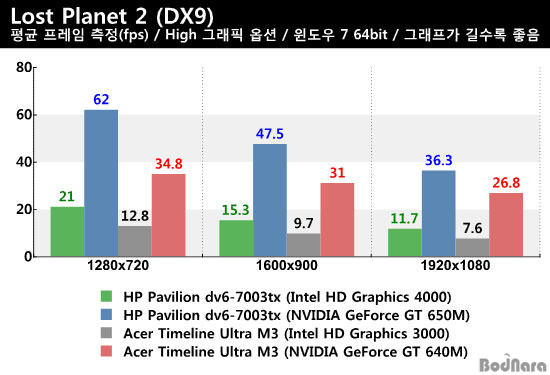 ·Î½ºÆ® Ç÷¡´Ö 2ÀÇ DX9 ¸ðµå Å×½ºÆ®(Type B)¿¡¼´Â ÄÉÇ÷¯ ±â¹Ý ¿£ºñµð¾Æ ÁöÆ÷½º 600M ¿ÜÀå ±×·¡ÇÈÀÌ Ãß°¡µÊÀ¸·Î½á Æò±Õ ÇÁ·¹ÀÓÀÌ Å©°Ô Çâ»óµÈ °ÍÀ¸·Î È®ÀÎÇÒ ¼ö ÀÖ´Ù.