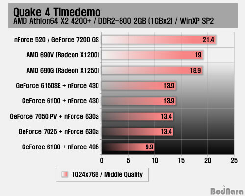 ÁöÆ÷½º 7200 GS Á¶ÇÕÀÌ Æò±Õ 36 ÇÁ·¹ÀÓ ÀÌ»óÀ» ±â·ÏÇßÀ¸¸ç, AMD 690G¿Í 690Vµµ ±×¿¡ ¸øÁö ¾ÊÀº 32ÇÁ·¹ÀÓ ÀÌ»óÀ» ±â·ÏÇß´Ù.