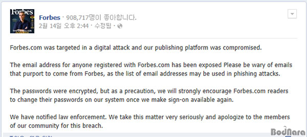Æ÷ºê½º´Â Æ÷ºê½º À¥ »çÀÌÆ®¿Í µ¿ÀÏÇÑ ºñ¹Ð¹øÈ£¸¦ »ç¿ëÇÏ´Â »çÀÌÆ®ÀÇ ºñ¹Ð¹øÈ£¸¦ ¹Ù²Ù°í, Â÷ÈÄ Æ÷ºê½º´åÄÄÀÇ ·Î±×ÀÎ ±â´ÉÀ» »ç¿ëÇÒ ¼ö ÀÖ°ÔµÉ °æ¿ì Áï½Ã ºñ¹Ð¹øÈ£¸¦ ¹Ù²Ü °ÍÀ» ´çºÎÇßÀ¸¸ç, À̹ø ÇØÅ· »çÅ¿¡ ´ëÇØ FBI ¼ö»ç ÀÇ·Ú¸¦ Æ÷ÇÔÇØ ¹ýÀûÀ¸·Î °·ÂÇÏ°Ô ´ëÀÀÇÒ °ÍÀÓÀ» õ¸íÇß´Ù. |