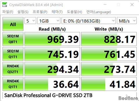 ¿¬°áÇßÀ» ¶§ ÃÖ´ë ½ºÆåº¸´Ù´Â ¾à°£ ³·Áö¸¸ SATA ¹æ½ÄÀÇ ¿ÜÀå SSD³ª ÀÏ¹Ý ¿ÜÀå HDDº¸´Ù´Â ºü¸¥ ¼º´ÉÀ» º¸¿©ÁÖ°í ÀÖ´Ù.