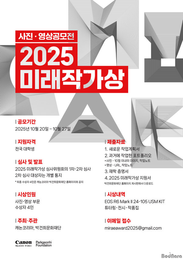 ÅäÅ» À̹Ì¡ ¼Ö·ç¼Ç ±â¾÷ ij³íÄÚ¸®¾Æ(´ëÇ¥ÀÌ»ç ¹ÚÁ¤¿ì, kr.canon)°¡ ¹Ú°ÇÈñ¹®ÈÀç´Ü°ú ÇÔ²² ´ëÇлý »çÁø•¿µ»ó °ø¸ðÀü ‘2025 ¹Ì·¡ÀÛ°¡»ó’À» °³ÃÖÇÑ´Ù.