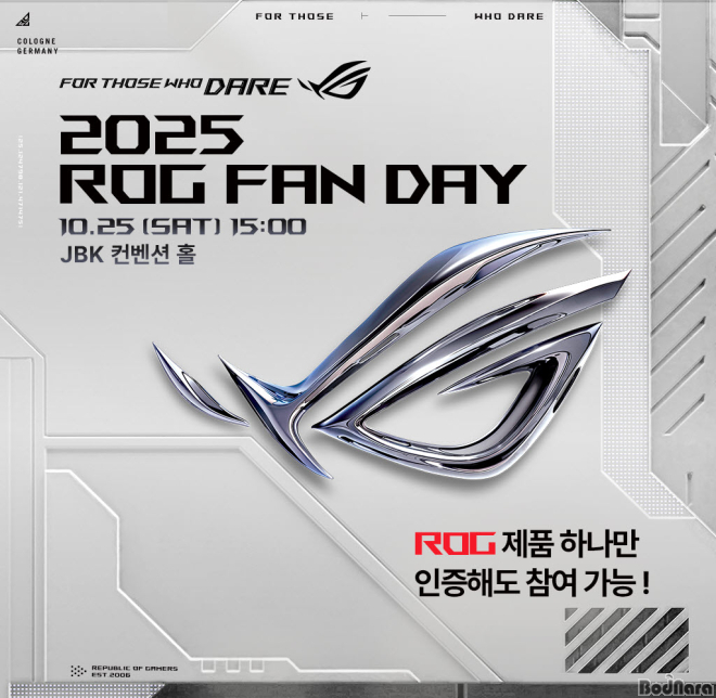ROG FAN DAY 2025´Â ¿¡À̼ö½º ±×·¡ÇÈÄ«µå 30ÁÖ³âÀ» ±â³äÇϰí ROG¸¦ »ç¶ûÇÏ´Â À¯Àúµé°úÀÇ ¸¸³²À» À§ÇØ ¸¶·ÃµÈ ÀÚ¸®·Î 10¿ù 25ÀÏ ¿ÀÈÄ 3½Ã, ¼­¿ï JBK ÄÁº¥¼Ç Ȧ¿¡¼­ ÁøÇàµÈ´Ù. ROGÀÇ ´Ù¾çÇÑ Çϵå¿þ¾î¿Í ´õºÒ¾î ½ÅÁ¦Ç° Àü½Ã ¹× üÇè ±×¸®°í ´Ù¾çÇÑ À̺¥Æ®¿Í °æÇ°ÀÌ Á¦°øµÉ ¿¹Á¤À¸·Î Âü°¡ ½ÅûÀº ¿¡À̼ö½º °ø½Ä ȨÆäÀÌÁö ¹× ASUS · ROG SNSä³ÎÀ» ÅëÇØ °¡´ÉÇÏ´Ù.