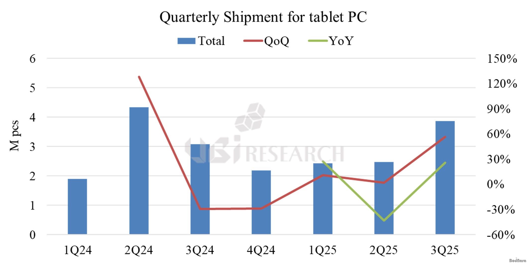 Áß´ëÇü OLED ½ÃÀå Áß¿¡¼µµ tablet PC¿ë OLED ÆÐ³ÎÀÇ ÃâÇÏ·®ÀÌ Å« ÆøÀ¸·Î Áõ°¡Çß´Ù. 3»çºÐ±â tablet PC¿ë OLED ÃâÇÏ·®Àº ÀüºÐ±â ´ëºñ 56%, Àü³â µ¿±â ´ëºñ 25.9% Áõ°¡ÇßÀ¸¸ç, ÀÌ´Â AppleÀÇ iPad Pro ½Å±Ô ¸ðµ¨¿¡
