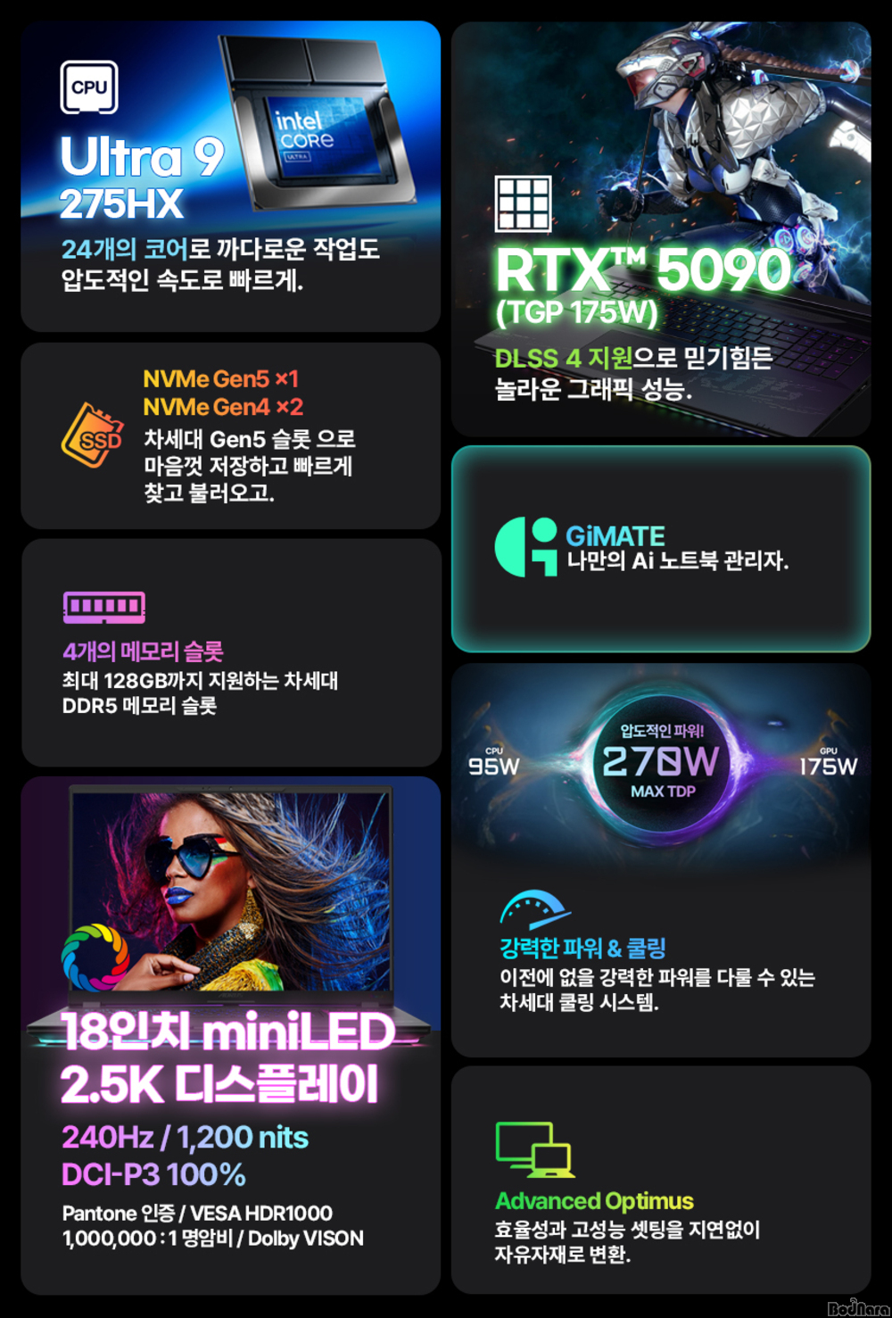 AORUS MASTER 18Àº ÃֽŠÀÎÅÚ® ÄÚ¾î™ Ultra 9 275HX ÇÁ·Î¼¼¼¸¦ žÀçÇØ ÃÖ´ë 5.4GHz Ŭ·° ¼Óµµ¿Í AI PC ±â´ÉÀ» Áö¿øÇϸç, °ÔÀְ̹ú Å©¸®¿¡ÀÌÆ¼ºê ÀÛ¾÷ ¸ðµÎ¿¡¼ Ź¿ùÇÑ ¼º´ÉÀ» Á¦°øÇÑ´Ù. NVIDIA® GeForce RTX™ 5090 / 5080 ±×·¡ÇÈÄ«µå¸¦ ÀåÂøÇØ GDDR7 ¸Þ¸ð¸®, DLSS 4, Çâ»óµÈ ·¹ÀÌ Æ®·¹ÀÌ½Ì µî ÃֽŠAI ±â¹Ý ±×·¡ÇÈ ±â¼úÀ» Áö¿øÇÑ´Ù. ¶ÇÇÑ NVIDIA Advanced Optimus ±â¼úÀ» ÅëÇØ ÃÖ°í ¼öÁØÀÇ ¼º´É°ú Àü·Â È¿À²À» µ¿½Ã¿¡ ½ÇÇöÇÑ´Ù.