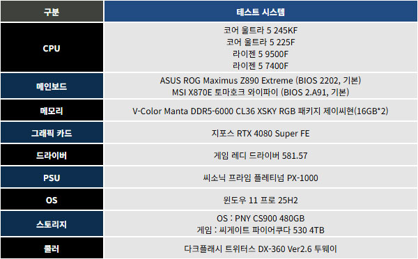 ¸Þ¸ð¸®´Â DDR5 6000MHz 16GB*2, OS´Â À©µµ¿ì 11 25H2¸¦ ÀÌ¿ëÇß´Ù.