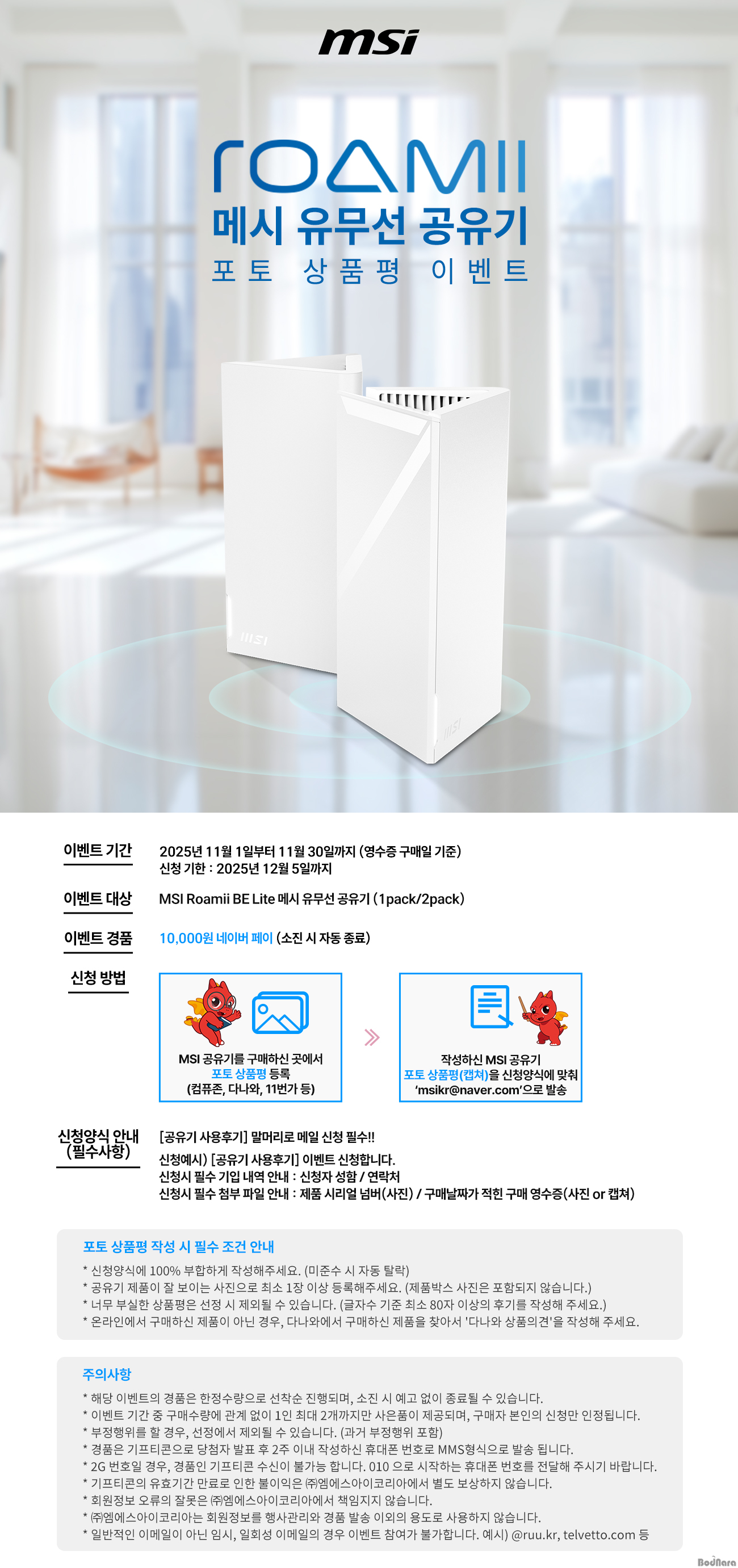 [11/05] MSI Roamii BE Lite WiFi7 Èıâ ÀÛ¼ºÇϸé 1¸¸¿ø! 11¿ù À̺¥Æ® ÁøÇà