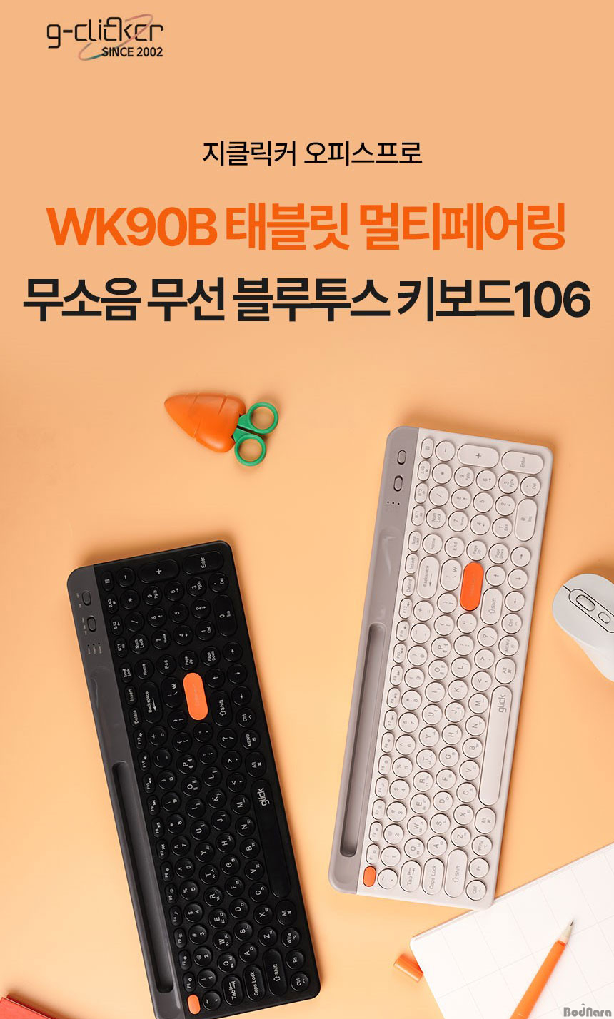 ÁöŬ¸¯Ä¿(g-clicker)´Â ÅÍÄ¡¸¦ »ç¿ëÇÏ´Â ¸ð¹ÙÀÏ µð¹ÙÀ̽ºÀÇ ³ôÀº ¿ÀŸÀ²°ú ³·Àº »ý»ê¼ºÀ» ¼ø½Ä°£¿¡ ÇØ°áÇϰí, PC µî ´Ù¾çÇÑ ±â±â¿Í ¿¬°èÇØ ÇϳªÀÇ Å°º¸µå·Î PC¿Í ¸ð¹ÙÀÏ ±â±â¸¦ ¸ðµÎ ¿øÈ°ÇÏ°Ô È°¿ëÇÒ ¼ö ÀÖ´Â ‘ÁöŬ¸¯Ä¿ ¿ÀÇǽºÇÁ·Î WK90B ÅÂºí¸´ ¸ÖƼÆä¾î¸µ ¹«¼ÒÀ½ ¹«¼± ºí·çÅõ½º Űº¸µå 106Ű(ÀÌÇÏ WK90B)’¸¦ Ãâ½ÃÇÑ´Ù°í ¹àÇû´Ù.