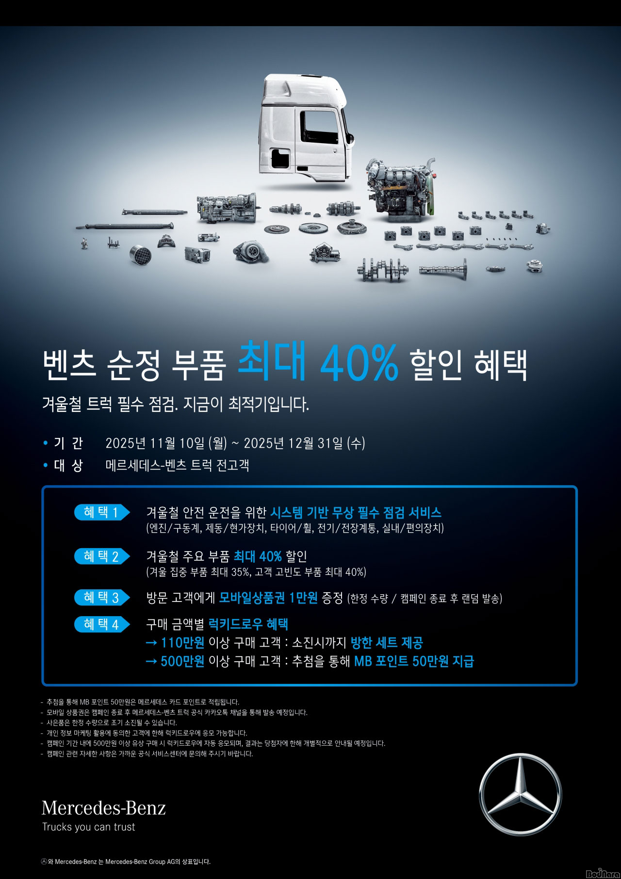 µ¿±ÙÅ ½ºÅ¸Æ®·°ÄÚ¸®¾Æ ´ëÇ¥´Â “°Ü¿ïö¿¡´Â Â÷·®ÀÇ ¼º´É°ú ¾ÈÀü¼º È®º¸¸¦ À§ÇÑ »çÀü Á¡°ËÀÌ ÇʼöÀû”À̶ó¸ç, “À̹ø Ä·ÆäÀÎÀ» ÅëÇØ °í°´µéÀÌ ÇÕ¸®ÀûÀÎ ºñ¿ëÀ¸·Î Æ®·°À» ÃÖ»óÀÇ »óÅ·ΠÀ¯ÁöÇϰí, ½Ã½ºÅÛ ±â¹Ý ¹«»ó Çʼö Á¡°ËÀ» ÅëÇØ ÇÑÃþ ´õ ½Å·ÚÇÒ ¼ö ÀÖ´Â ¸Þ¸£¼¼µ¥½º-º¥Ã÷ Æ®·°¸¸ÀÇ ¼ºñ½º ǰÁúÀ» °æÇèÇÏ±æ ¹Ù¶õ´Ù”°í ¸»Çß´Ù.