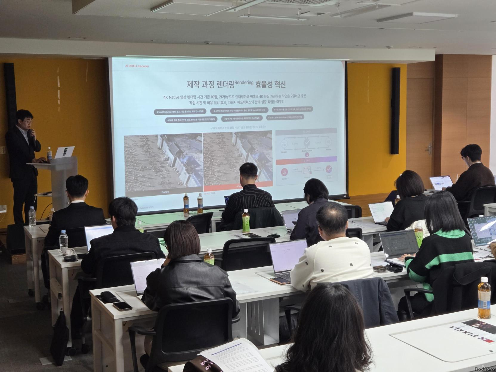 Æ÷¹ÙÀÌÆ÷´Â 11ÀÏ ¿©ÀǵµThe-KŸ¿ö¿¡¼ ÀÚ»çÀÇ ½ÅÁ¦Ç° ‘AI Çȼ¿ ½ºÆ®¸²(AI Pixell Stream)’À» °ø°³ÇÏ´Â ±â¼ú ½Ã¿¬È¸ ¹× ±âÀÚ°£´ãȸ¸¦ ¿°í, ±â¼ú ¼Ò°³ »Ó¸¸ ¾Æ´Ï¶ó ÇâÈÄ »ç¾÷ ¹æÇ⼺ µî ȸ»çÀÇ ¼ºÀå ºñÀü±îÁö ÇÔ²² °øÀ¯ÇÏ´Â ÀÚ¸®¸¦ ¸¶·ÃÇß´Ù. À̳¯ °£´ãȸ¿¡´Â Æ÷¹ÙÀÌÆ÷ À±ÁØÈ£ ´ëÇ¥¿Í ¹è¼º¿Ï ¼Ö·ç¼Ç»ç¾÷º»ºÎÀåÀ» ºñ·Ô ´Ù¼öÀÇ ¾÷°è °ü°èÀÚ ¹× ¹Ìµð¾î °ü°èÀÚµéÀÌ Âü¼®Çß´Ù.