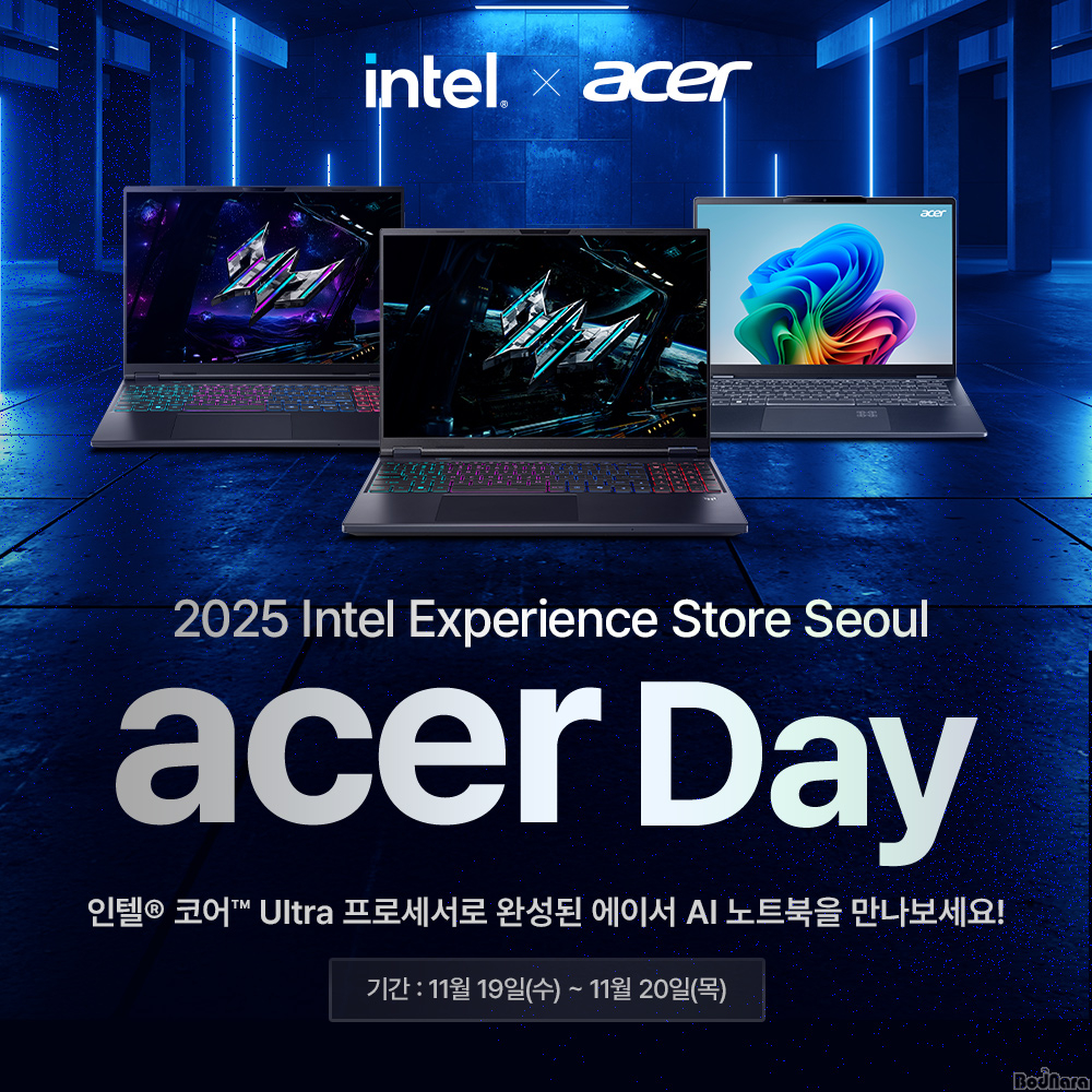 ±Û·Î¹ú PC Á¦Á¶»ç ¿¡À̼(Acer)°¡ ¿À´Â 11¿ù 19ÀϺÎÅÍ 20ÀϱîÁö ¼¿ï °³² OPUS 407¿¡¼ ÁøÇàÇÏ´Â ‘ÀÎÅÚ ÀͽºÇǸ®¾ð½º ½ºÅä¾î ¼¿ï(Intel Experience Store Seoul) ¿¡À̼ µ¥ÀÌ’¸¦ ÅëÇØ ÀÎÅÚ® ÄÚ¾î™ Ultra ÇÁ·Î¼¼¼¸¦ žÀçÇÑ ÃֽŠAI ±â¹Ý ³ëÆ®ºÏ ¶óÀξ÷ üÇèÁ¸À» ¿î¿µÇÑ´Ù°í ¹àÇû´Ù.