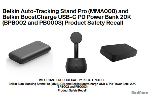 À̹ø ¸®ÄÝÀº ³»ºÎ¿¡ »ç¿ëµÈ ¸®Æ¬-À̿ ¼¿¿¡¼ ¹ß°ßµÈ Á¦Á¶ °áÇÔ¿¡ ÀÇÇÑ °ÍÀ¸·Î, ¸®ÄÝ ´ë»óÀº º¸Á¶ ¹èÅ͸® 2Á¾ (BoostCharge USB-C PD Power Bank 20K, BPB002 / PB0003)°ú ÀÚµ¿ ÃßÀû ½ºÅĵå(Auto-Tracking Stand Pro, MMA008)´Ù.
