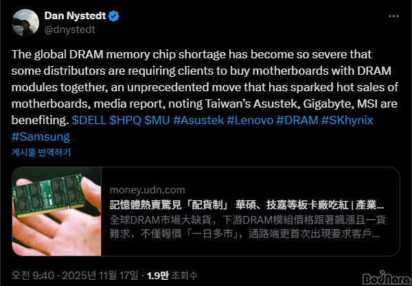 ´ë¸¸ °æÁ¦Àϰ£Áö(Economic Daily News)¿¡ µû¸£¸é, ÀϺΠÀ¯Åë ä³Î¿¡¼ ¼ÒºñÀÚ°¡ DRAM ±¸¸Å½Ã ¸ÞÀκ¸µå ±¸¸Å¸¦ °Á¦Çϰí ÀÖÀ¸¸ç,DRAM ´Üµ¶ ÆÇ¸Å´Â ÁøÇàÇÏÁö ¾Ê°í ÀÖ´Ù.