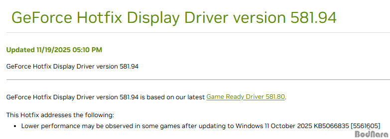 ÇØ´ç ¹öÀüÀº ÃֽаÔÀÓ ·¹µð µå¶óÀ̹ö 581.80À» ±â¹ÝÀ¸·Î, ÃÖ±Ù À©µµ¿ì 11ÀÇ 10¿ù ¾÷µ¥ÀÌÆ®(KB5066835) ¼³Ä¡ ÈÄ ÀϺΠ°ÔÀÓ¿¡¼ ¹ß»ýÇÏ´Â ¼º´É ÀúÇϸ¦ °³¼±Çϱâ À§ÇÑ Á¶Ä¡°¡ ÀÌ·ïÁø ¹öÀüÀÌ´Ù.